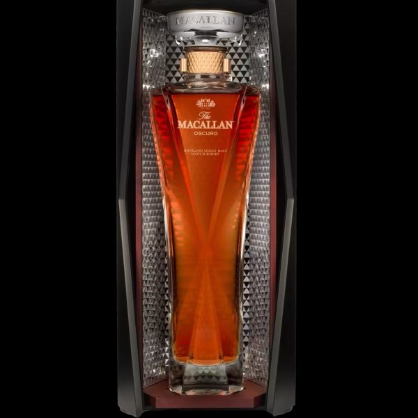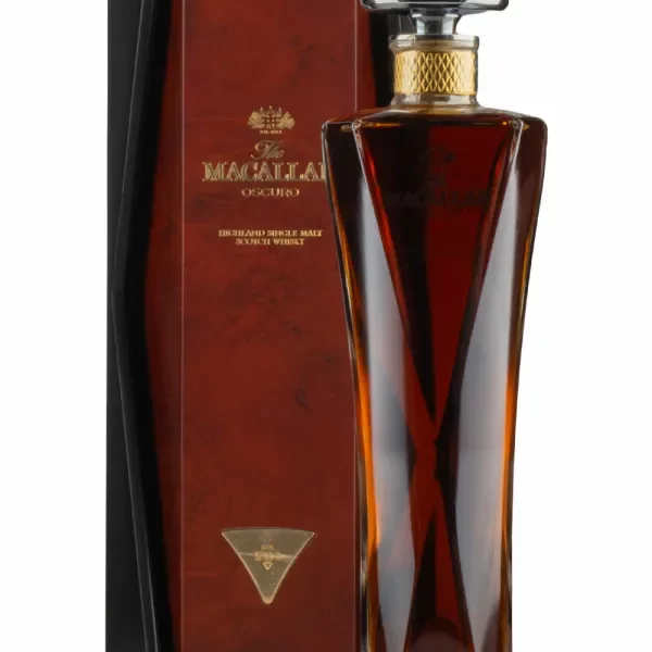 Macallan Oscuro is a beautiful, very limited-edition whiskey from Macallan. Oscuro is made with whiskey from 1987 and 1997, it is sherried and incredibly rich. 1824 Collection.